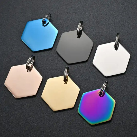 Stainless Steel Engravable Hexagon Cat Dog Tags ( pk of 10 ) / KT0041