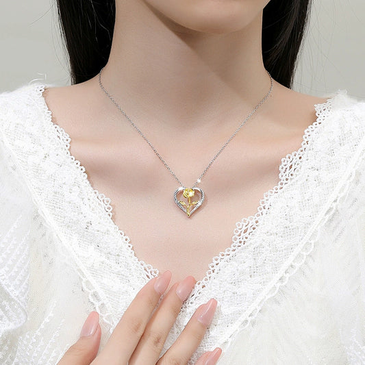Sterling Silver Zicron Heart Rose Pendant Necklace / KJ0252