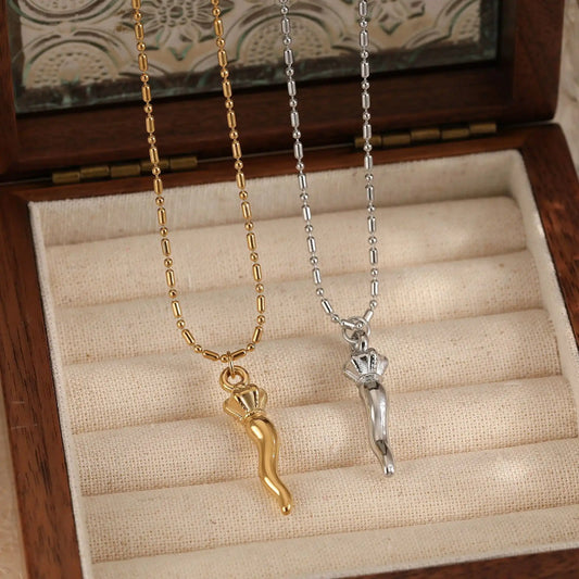 Stainless steel Beaded Trendy Crown Pendant Necklace / 25003057
