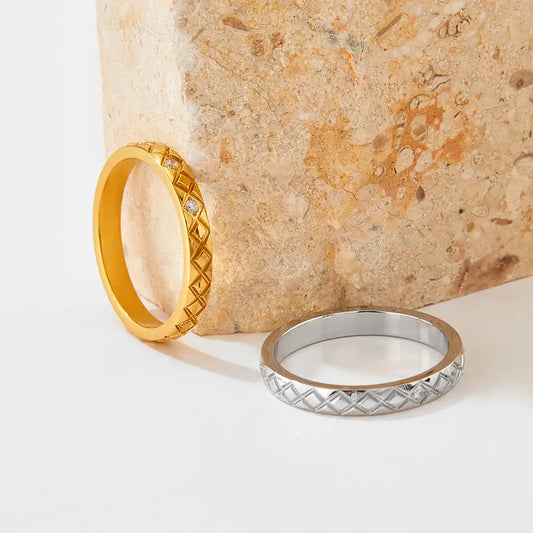 Stainless steel Rhinestone ring for women classic geometric diamond pattern / 25204014