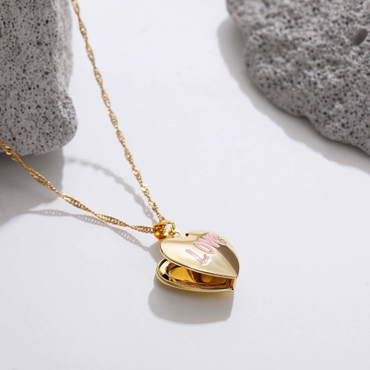 18K Gold Plated Copper Oval LOVE Heart Album Pendant Locket Necklace / KN5006