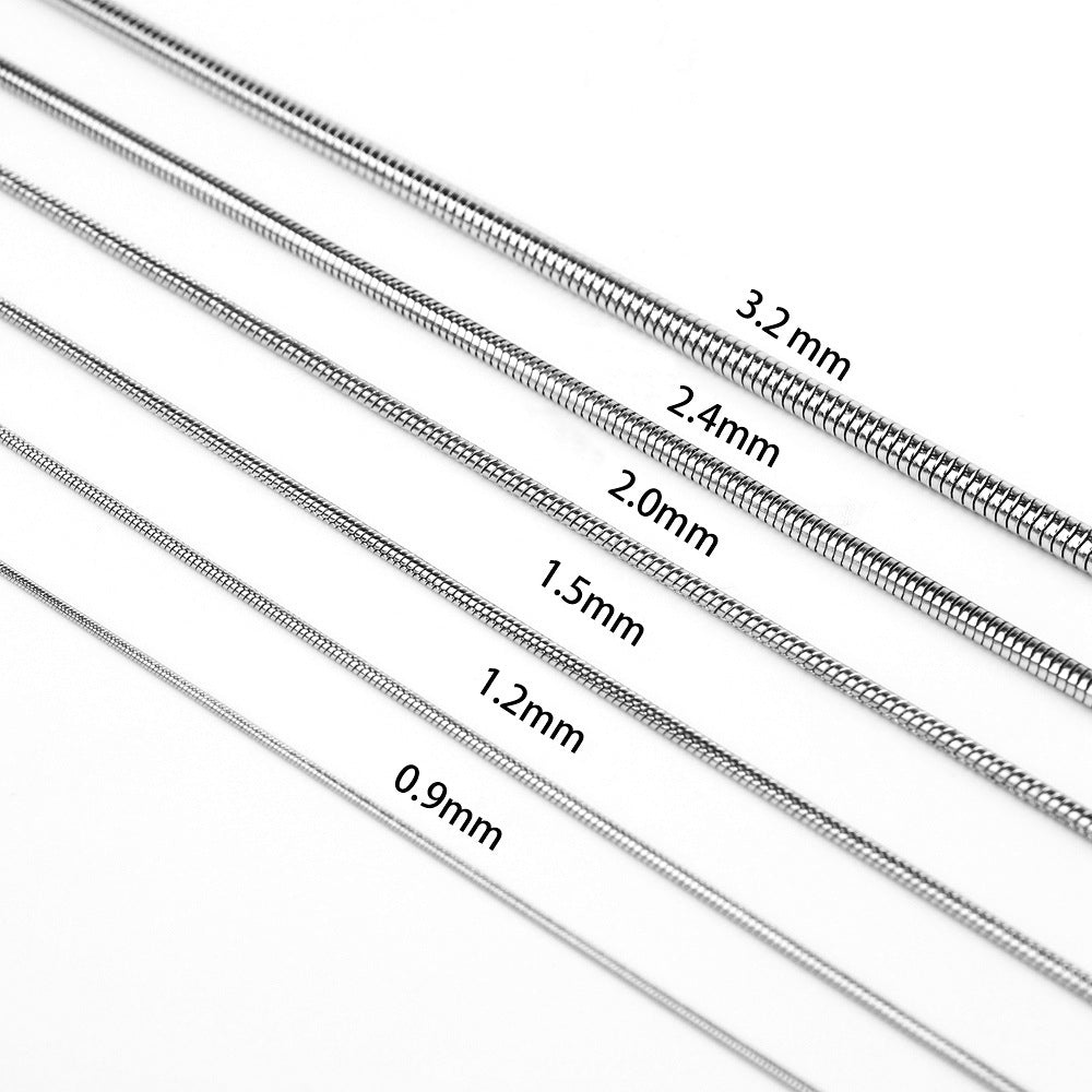 Expertly crafted with high-quality stainless steel, this 0.9-3.2mm rounded snake chain necklaces boasts durability and a sleek, modern look. Perfect for everyday wear or special occasions, these chains are sure to elevate any outfit. Don't settle for less, invest in these versatile and timeless accessories.