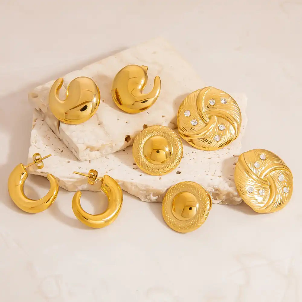 These sophisticated earrings feature distinctive retro-inspired geometric forms with precisely engineered irregular curved hooks. Crafted from premium stainless steel, they offer exceptional tensile strength and corrosion resistance while maintaining hypoallergenic properties. The architectural silhouette combines vintage aesthetic elements with contemporary asymmetrical design principles, creating a refined statement piece that transitions seamlessly between professional and evening wear contexts.