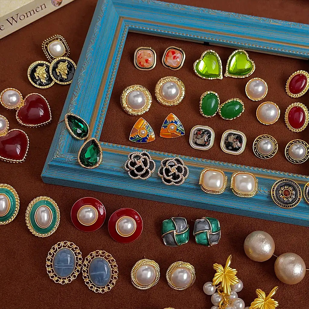 This pair of stud earrings, made with high-quality sterling silver, adds a sense of extravagance and vintage charm to any assortment of jewelry. Its opulent and striking appearance guarantees to leave a lasting impression and enhance any ensemble. Elevate your fashion game and embrace sophistication with this exquisite adornment.