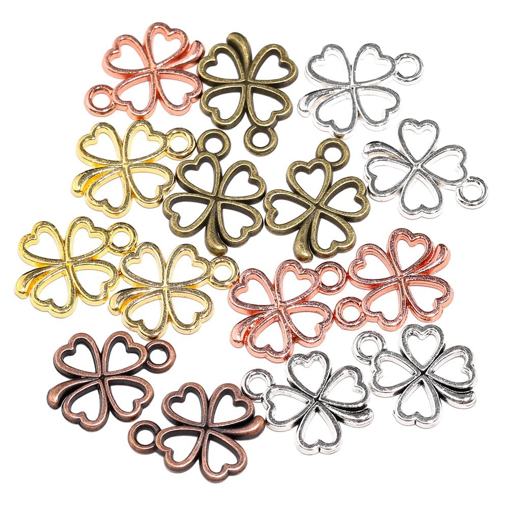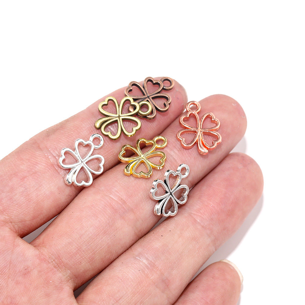 Add a touch of luck to your jewelry collection with our pack of 100 Hollow Four-leaf Clover Alloy Pendants. Made of high-quality alloy, each pendant features a unique, intricate design. Perfect for creating beautiful, one-of-a-kind pieces.